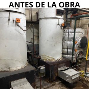 Con esa información, previo desguace, corte y retiro de las 2 (dos) calderas existentes, definimos y llevamos a cabo el proyecto de la fabricación, instalación y montaje de una CALDERA PRESURIZADA de 250.000 KCAL/H de capacidad para generación de AGUA.